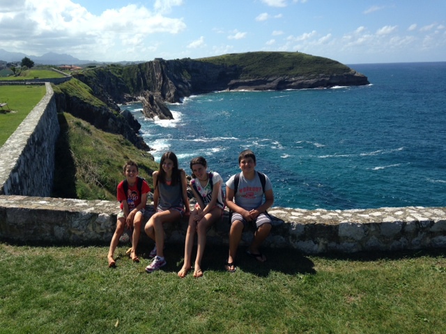 Una mañana más amanece en nuestro albergue de Gijón. En esta ocasión nos han dejado dormir unos minutos más, ya que la salida del bus hacia Llanes no era tan temprana. Después de desayunar nos fuimos al ático, teníamos que hacer nuestro "diary" que teníamos algo atrasado. Seguidamente nos montamos todos en el bus y partimos hacia Llanes, el destino de hoy. Como podéis apreciar en la siguiente foto, el tiempo en Asturias es muy cambiante. Puede hacer en Llanes temperatura de 26º y sol y a pocos kilómetros de distancia, en los vecinos Picos de Europa unas nubes que ni en la peli del "Señor de los Anillos", impresionante.