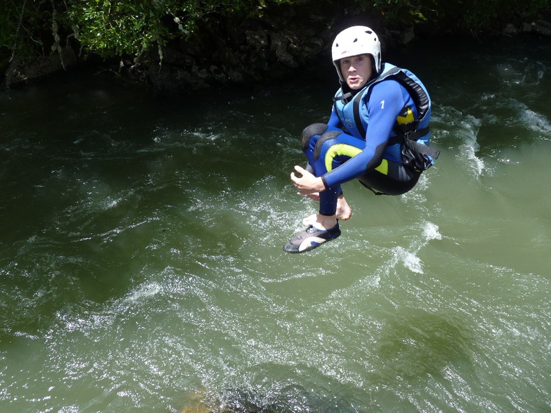 Transcurrido la mitad del recorrido los monitores comienzan a preparar abordajes de unas embarcaciones a otras, nos lo pasábamos en grande, aunque no hacía mucho calor, poco a poco nos animamos y acabamos todos metidos en el agua. También tuvimos la oportunidad de saltar desde unos lugares seguros y bajo la supervisión de los dos monitores era chulísimo!